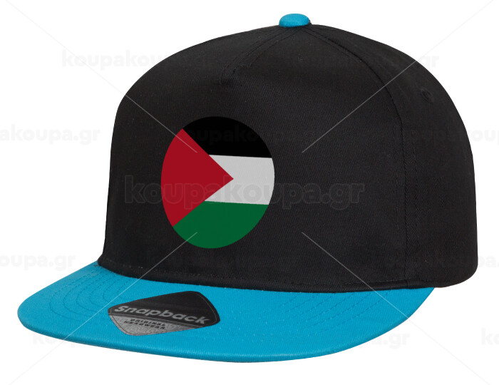 Palestine Flag, Child's Flat Snapback Hat, Black/Blue (100% COTTON, CHILD, UNISEX, ONE SIZE)