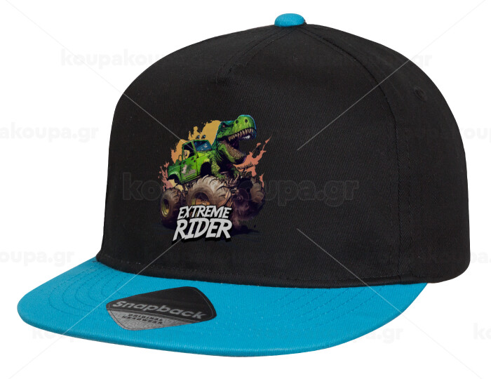 Extreme rider Dyno, Child's Flat Snapback Hat, Black/Blue (100% COTTON, CHILD, UNISEX, ONE SIZE)