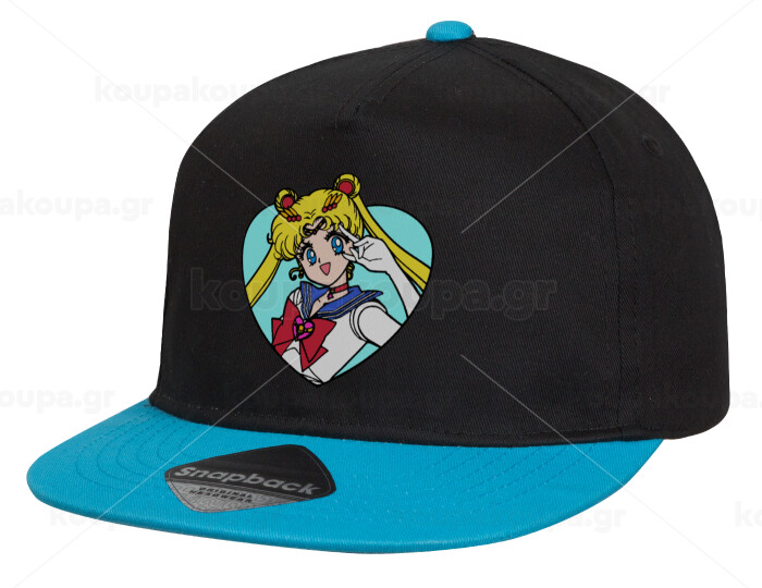 Sailor Moon star, Child's Flat Snapback Hat, Black/Blue (100% COTTON, CHILD, UNISEX, ONE SIZE)