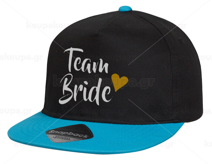 Team Bride, Child's Flat Snapback Hat, Black/Blue (100% COTTON, CHILD, UNISEX, ONE SIZE)
