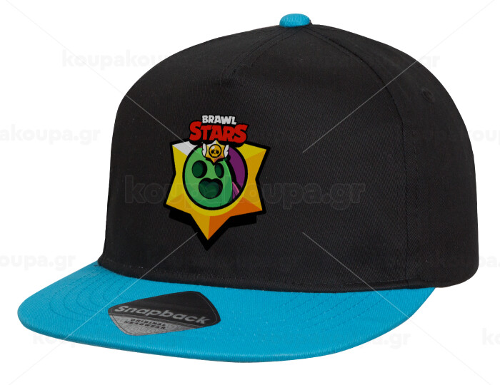Brawl Stars Spike, Child's Flat Snapback Hat, Black/Blue (100% COTTON, CHILD, UNISEX, ONE SIZE)