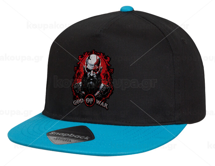 God of war, Child's Flat Snapback Hat, Black/Blue (100% COTTON, CHILD, UNISEX, ONE SIZE)