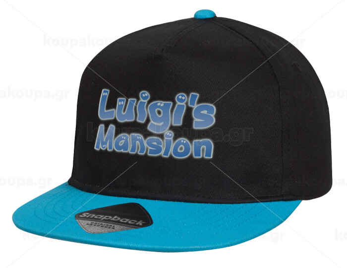 Luigi's Mansion, Child's Flat Snapback Hat, Black/Blue (100% COTTON, CHILD, UNISEX, ONE SIZE)