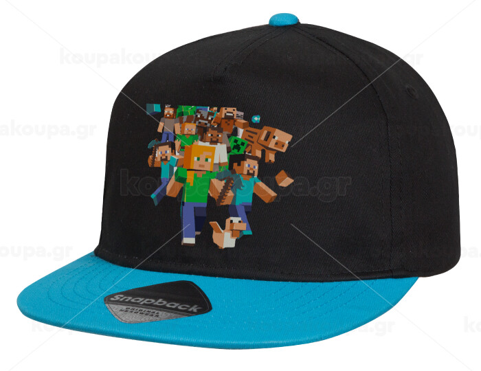Minecraft adventure, Child's Flat Snapback Hat, Black/Blue (100% COTTON, CHILD, UNISEX, ONE SIZE)