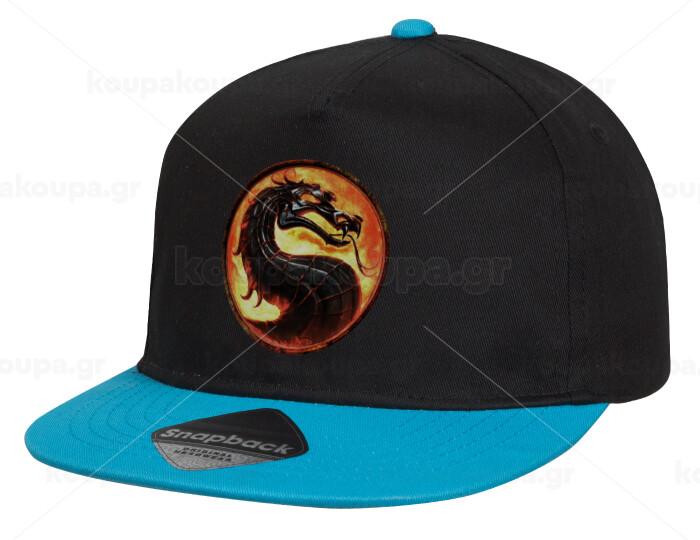 Mortal Kombat, Child's Flat Snapback Hat, Black/Blue (100% COTTON, CHILD, UNISEX, ONE SIZE)