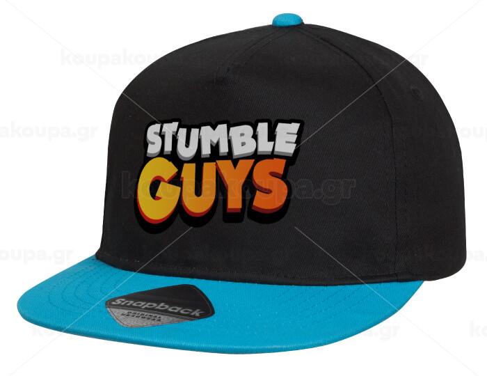 Stumble Guys, Child's Flat Snapback Hat, Black/Blue (100% COTTON, CHILD, UNISEX, ONE SIZE)