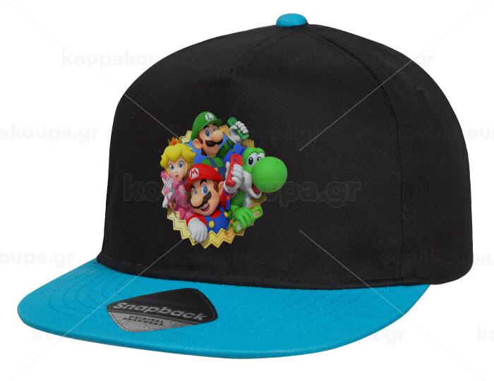 Super mario and Friends, Child's Flat Snapback Hat, Black/Blue (100% COTTON, CHILD, UNISEX, ONE SIZE)