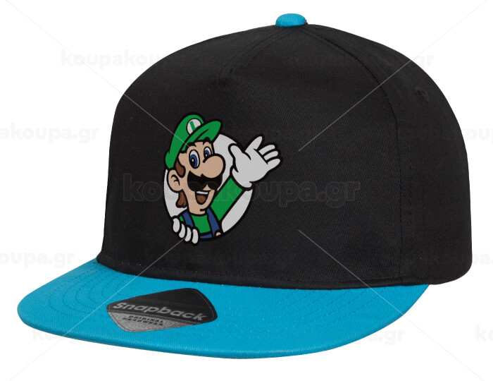 Super mario Luigi win, Child's Flat Snapback Hat, Black/Blue (100% COTTON, CHILD, UNISEX, ONE SIZE)
