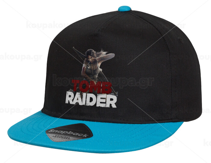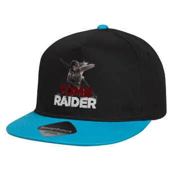 Tomb raider, Child's Flat Snapback Hat, Black/Blue (100% COTTON, CHILD, UNISEX, ONE SIZE)