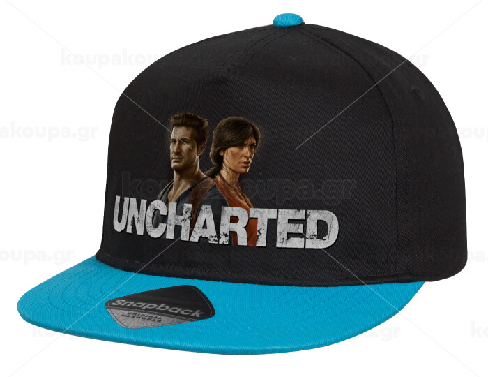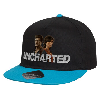 Uncharted, Child's Flat Snapback Hat, Black/Blue (100% COTTON, CHILD, UNISEX, ONE SIZE)