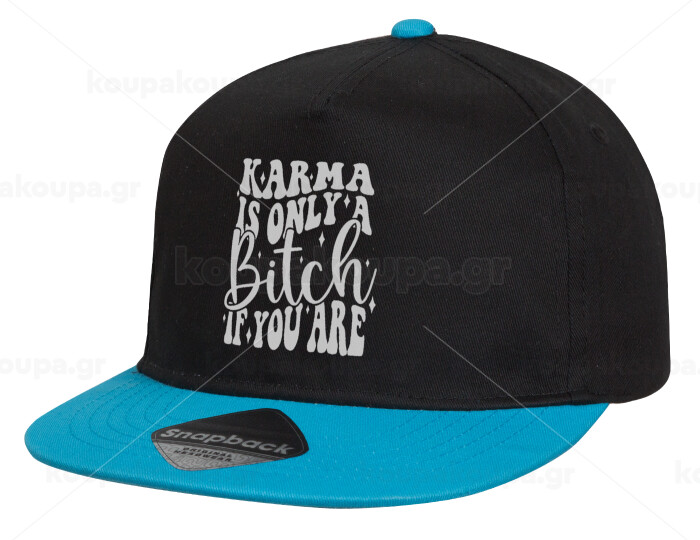 Karma is Only A Bitch if You Are, Child's Flat Snapback Hat, Black/Blue (100% COTTON, CHILD, UNISEX, ONE SIZE)