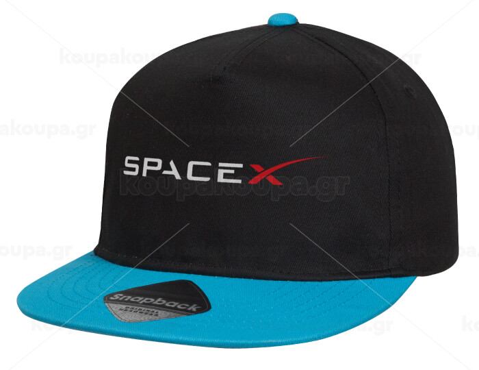 Space X, Child's Flat Snapback Hat, Black/Blue (100% COTTON, CHILD, UNISEX, ONE SIZE)
