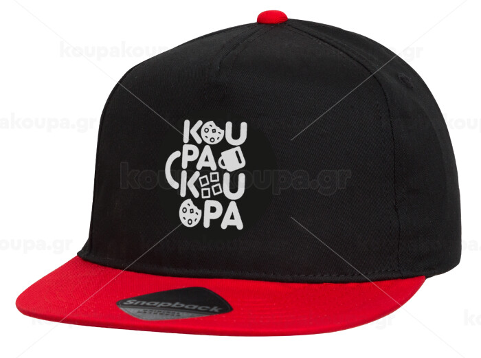 koupakoupa, Children's Flat Snapback Hat, Black/Red (100% COTTON, CHILDREN'S, UNISEX, ONE SIZE)