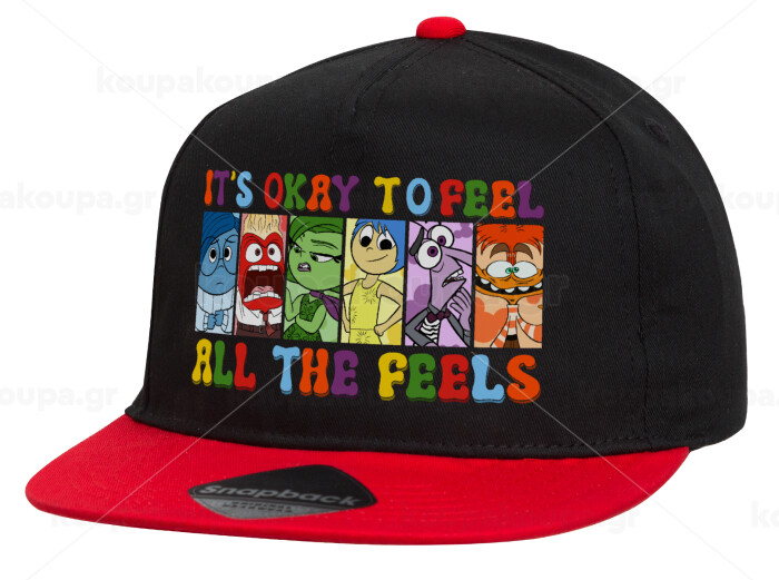 Inside Out It's Okay To Feel All The Feels , Children's Flat Snapback Hat, Black/Red (100% COTTON, CHILDREN'S, UNISEX, ONE SIZE)