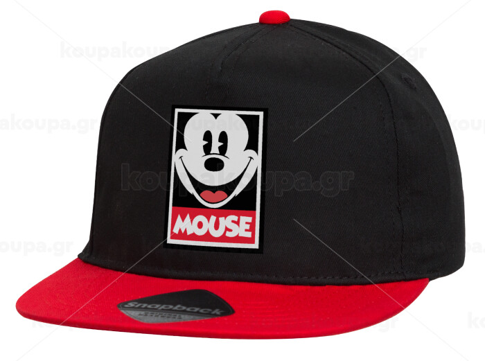 Mickey Mouse, Children's Flat Snapback Hat, Black/Red (100% COTTON, CHILDREN'S, UNISEX, ONE SIZE)