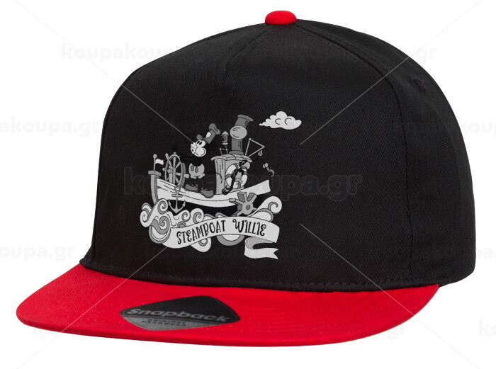 Mickey steamboat, Children's Flat Snapback Hat, Black/Red (100% COTTON, CHILDREN'S, UNISEX, ONE SIZE)
