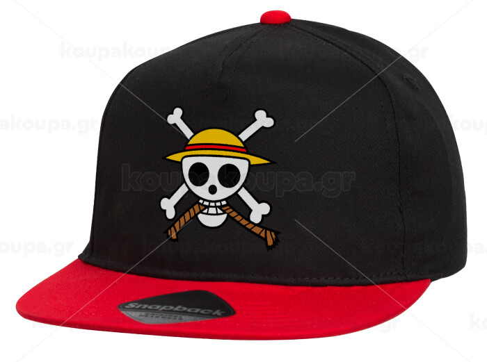 Onepiece skull, Children's Flat Snapback Hat, Black/Red (100% COTTON, CHILDREN'S, UNISEX, ONE SIZE)
