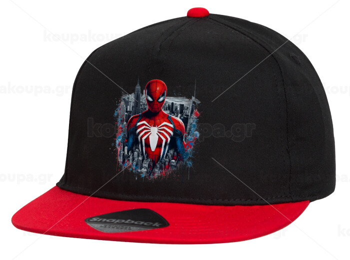 Spiderman City, Children's Flat Snapback Hat, Black/Red (100% COTTON, CHILDREN'S, UNISEX, ONE SIZE)