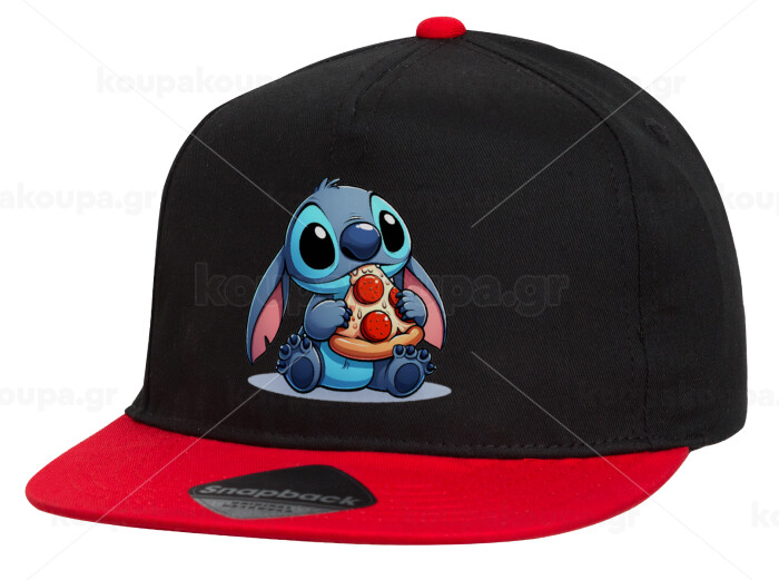 Stitch Pizza, Children's Flat Snapback Hat, Black/Red (100% COTTON, CHILDREN'S, UNISEX, ONE SIZE)