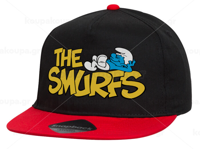 The smurfs, Children's Flat Snapback Hat, Black/Red (100% COTTON, CHILDREN'S, UNISEX, ONE SIZE)
