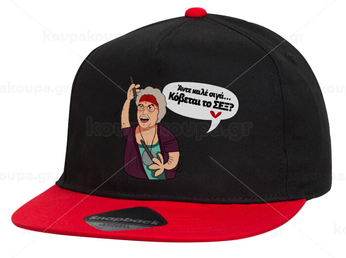 Αντε καλέ, σιγά, κόβεται το σέξ ;, Children's Flat Snapback Hat, Black/Red (100% COTTON, CHILDREN'S, UNISEX, ONE SIZE)