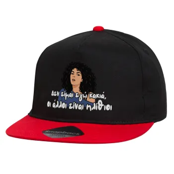 Δεν είμαι εγώ κακιά, Children's Flat Snapback Hat, Black/Red (100% COTTON, CHILDREN'S, UNISEX, ONE SIZE)