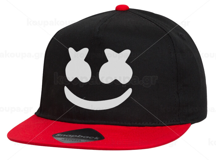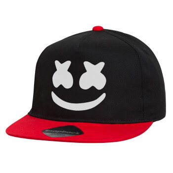 Marshmello, Children's Flat Snapback Hat, Black/Red (100% COTTON, CHILDREN'S, UNISEX, ONE SIZE)
