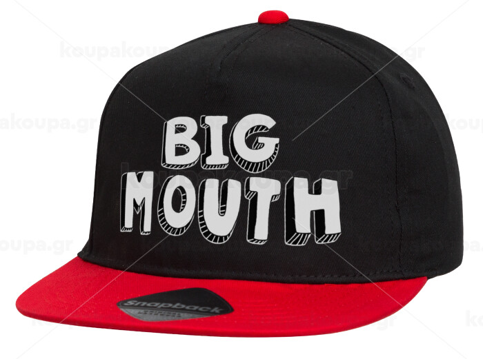 Big mouth, Children's Flat Snapback Hat, Black/Red (100% COTTON, CHILDREN'S, UNISEX, ONE SIZE)