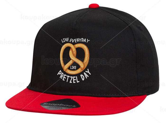 The office, Live every day like pretzel day, Children's Flat Snapback Hat, Black/Red (100% COTTON, CHILDREN'S, UNISEX, ONE SIZE)