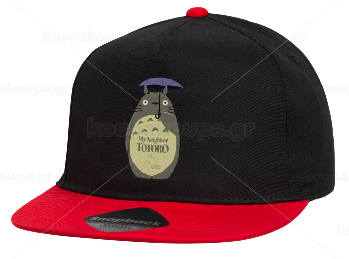 Totoro from My Neighbor Totoro, Children's Flat Snapback Hat, Black/Red (100% COTTON, CHILDREN'S, UNISEX, ONE SIZE)