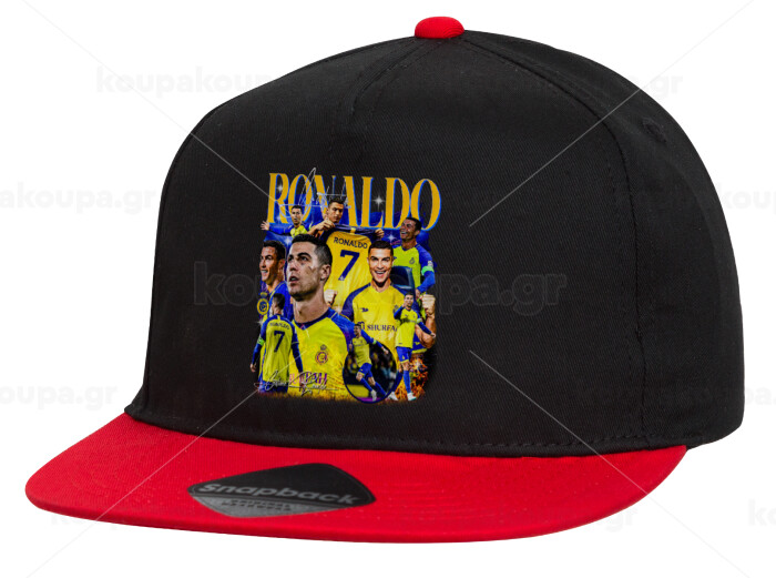 Cristiano Ronaldo Al Nassr, Children's Flat Snapback Hat, Black/Red (100% COTTON, CHILDREN'S, UNISEX, ONE SIZE)