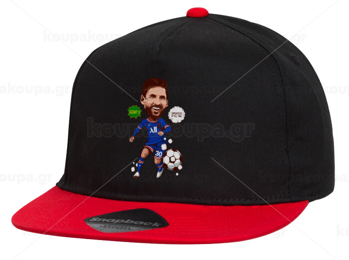 Lionel Messi drawing, Children's Flat Snapback Hat, Black/Red (100% COTTON, CHILDREN'S, UNISEX, ONE SIZE)