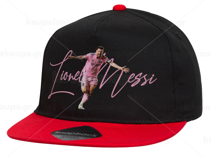Lionel Messi inter miami jersey, Children's Flat Snapback Hat, Black/Red (100% COTTON, CHILDREN'S, UNISEX, ONE SIZE)