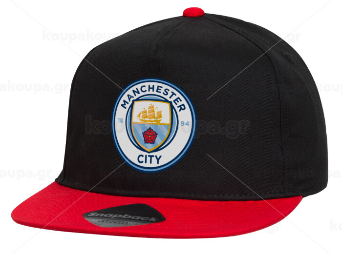 Manchester City FC , Children's Flat Snapback Hat, Black/Red (100% COTTON, CHILDREN'S, UNISEX, ONE SIZE)