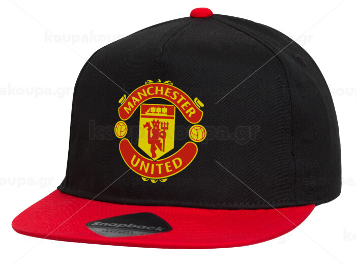 Manchester United F.C., Children's Flat Snapback Hat, Black/Red (100% COTTON, CHILDREN'S, UNISEX, ONE SIZE)