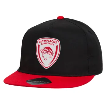 Olympiacos B.C., Children's Flat Snapback Hat, Black/Red (100% COTTON, CHILDREN'S, UNISEX, ONE SIZE)