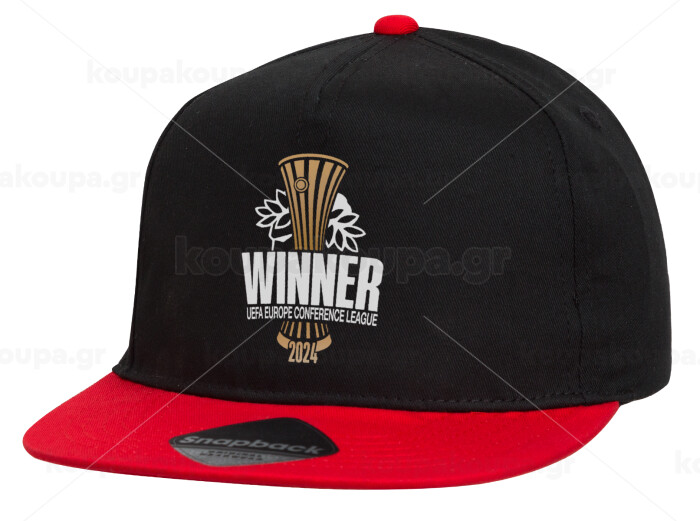 Europa Conference League WINNER, Children's Flat Snapback Hat, Black/Red (100% COTTON, CHILDREN'S, UNISEX, ONE SIZE)