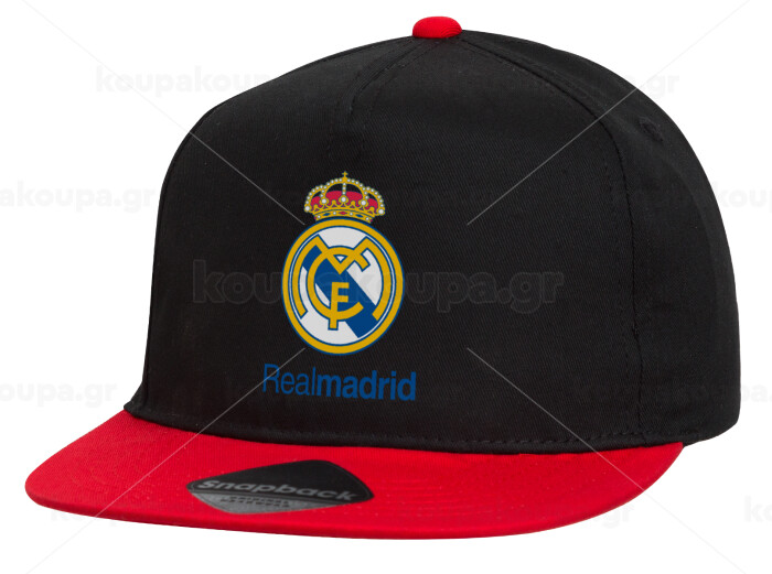 Real Madrid CF, Children's Flat Snapback Hat, Black/Red (100% COTTON, CHILDREN'S, UNISEX, ONE SIZE)