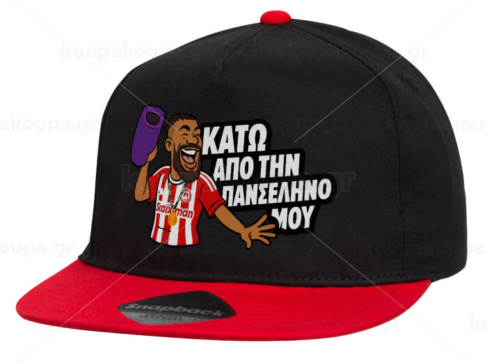 Ροντινέι, "ΚΑΤΩ ΑΠΟ ΤΗΝ ΠΑΝΣΕΛΗΝΟ ΜΟΥ!", Children's Flat Snapback Hat, Black/Red (100% COTTON, CHILDREN'S, UNISEX, ONE SIZE)