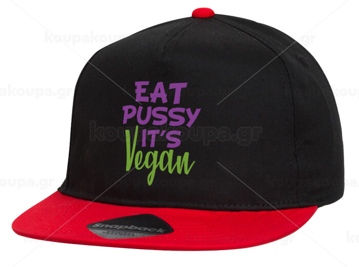 EAT pussy it's vegan, Children's Flat Snapback Hat, Black/Red (100% COTTON, CHILDREN'S, UNISEX, ONE SIZE)
