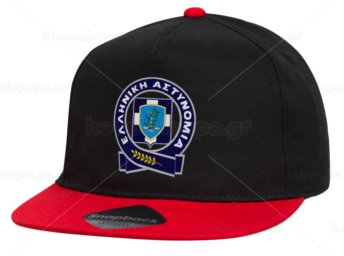 Ελληνική Αστυνομία, Children's Flat Snapback Hat, Black/Red (100% COTTON, CHILDREN'S, UNISEX, ONE SIZE)