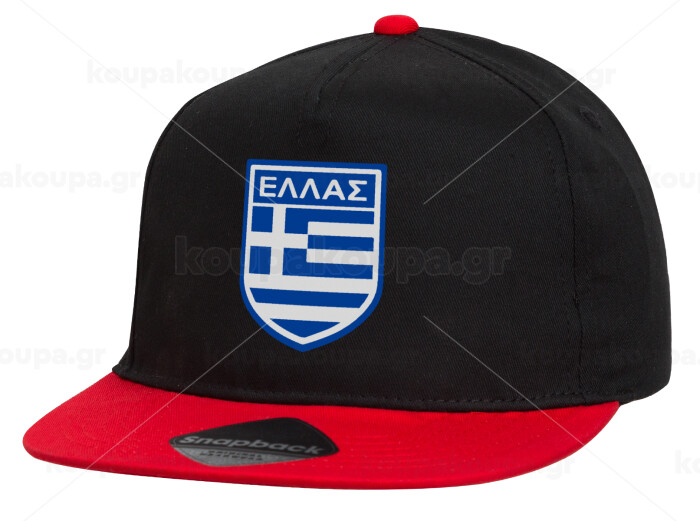 Hellas, Children's Flat Snapback Hat, Black/Red (100% COTTON, CHILDREN'S, UNISEX, ONE SIZE)