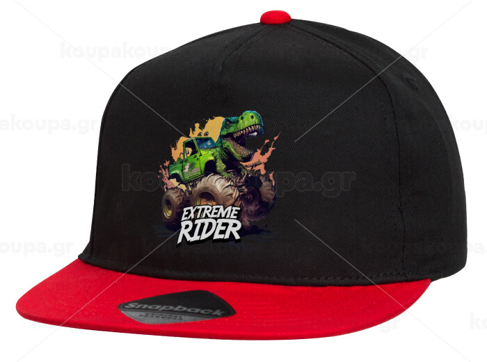 Extreme rider Dyno, Children's Flat Snapback Hat, Black/Red (100% COTTON, CHILDREN'S, UNISEX, ONE SIZE)