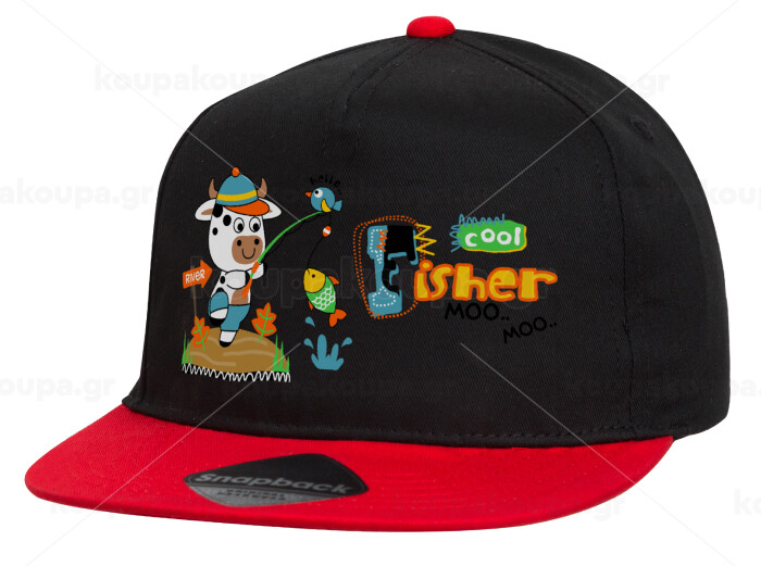 Kids Fisherman, Children's Flat Snapback Hat, Black/Red (100% COTTON, CHILDREN'S, UNISEX, ONE SIZE)