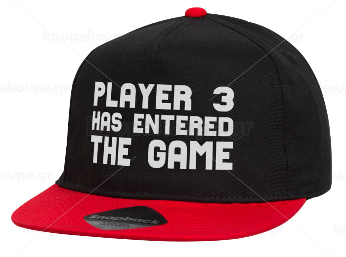 Player 3 has entered the Game, Children's Flat Snapback Hat, Black/Red (100% COTTON, CHILDREN'S, UNISEX, ONE SIZE)