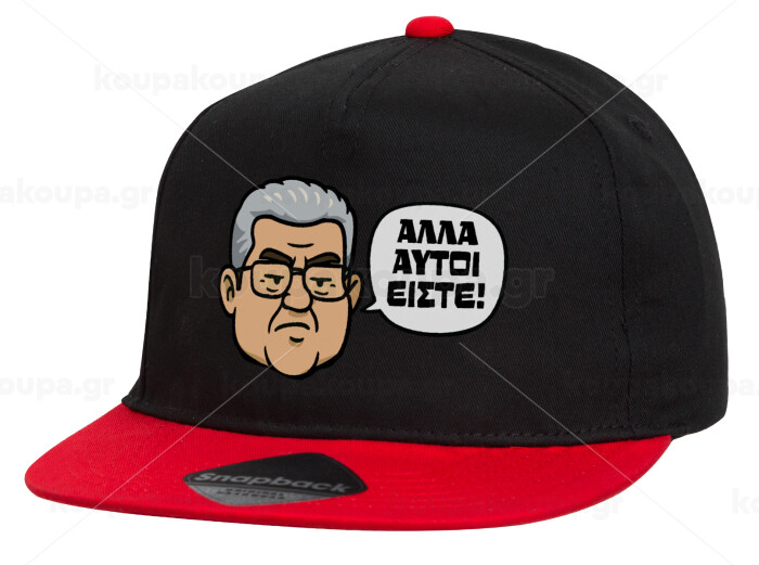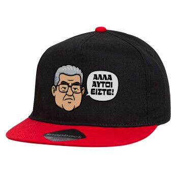 Κουτσούμπας, "Αλλά αυτοί είστε!", Children's Flat Snapback Hat, Black/Red (100% COTTON, CHILDREN'S, UNISEX, ONE SIZE)