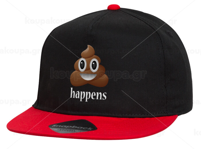 Shit Happens, Children's Flat Snapback Hat, Black/Red (100% COTTON, CHILDREN'S, UNISEX, ONE SIZE)