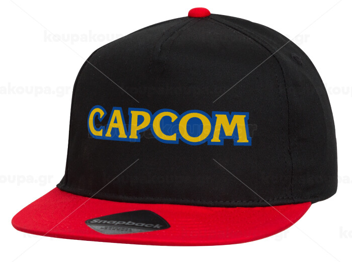 Capcom, Children's Flat Snapback Hat, Black/Red (100% COTTON, CHILDREN'S, UNISEX, ONE SIZE)