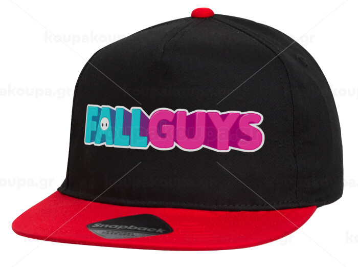 FALL GUYS, Children's Flat Snapback Hat, Black/Red (100% COTTON, CHILDREN'S, UNISEX, ONE SIZE)
