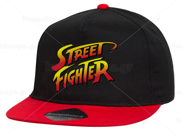 Street fighter, Children's Flat Snapback Hat, Black/Red (100% COTTON, CHILDREN'S, UNISEX, ONE SIZE)